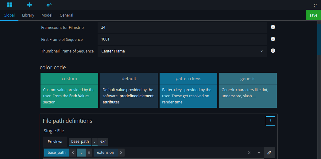 The path pattern and values define your naming convention and file structure on disk.