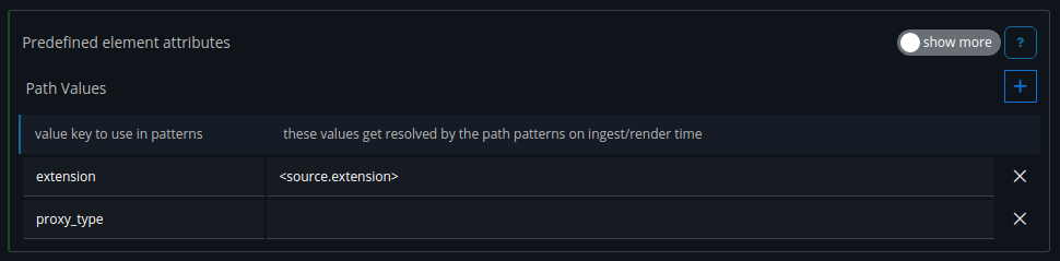 For the path patterns we will create three items. The path_file and path_sequence will later be use in the file path definitions. With the base_path we define the location for our proxy files.